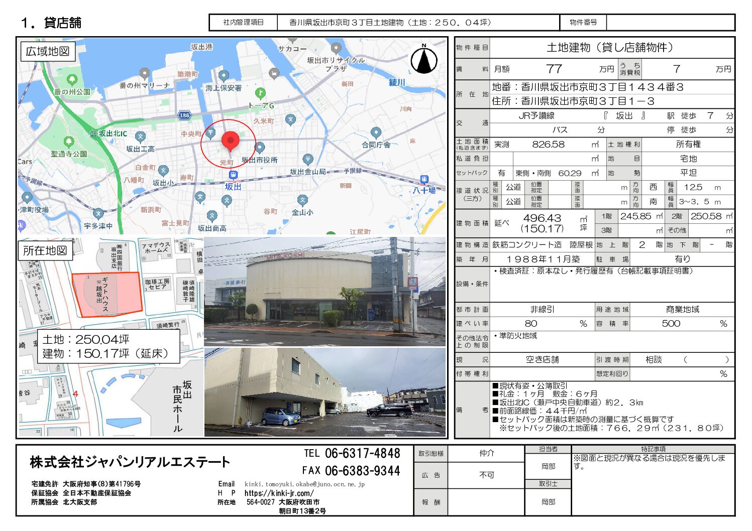 香川県坂出市京町3丁目(貸店舗)